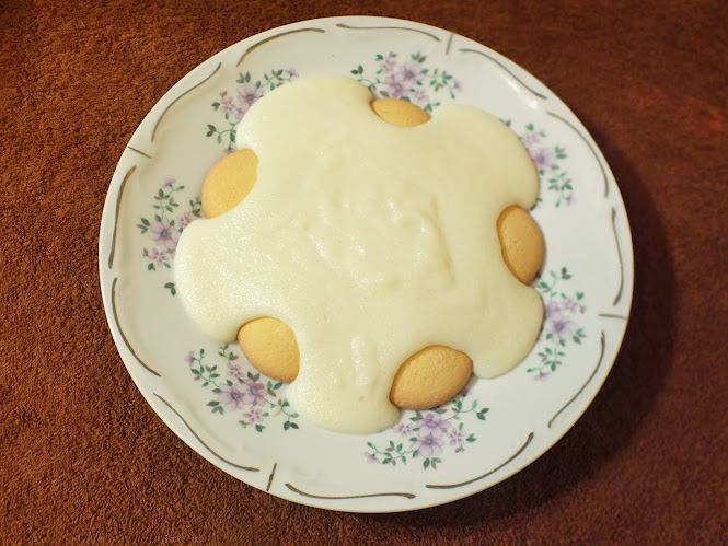 Pyszna śmietankowa kasza manna i delikatne biszkopty.