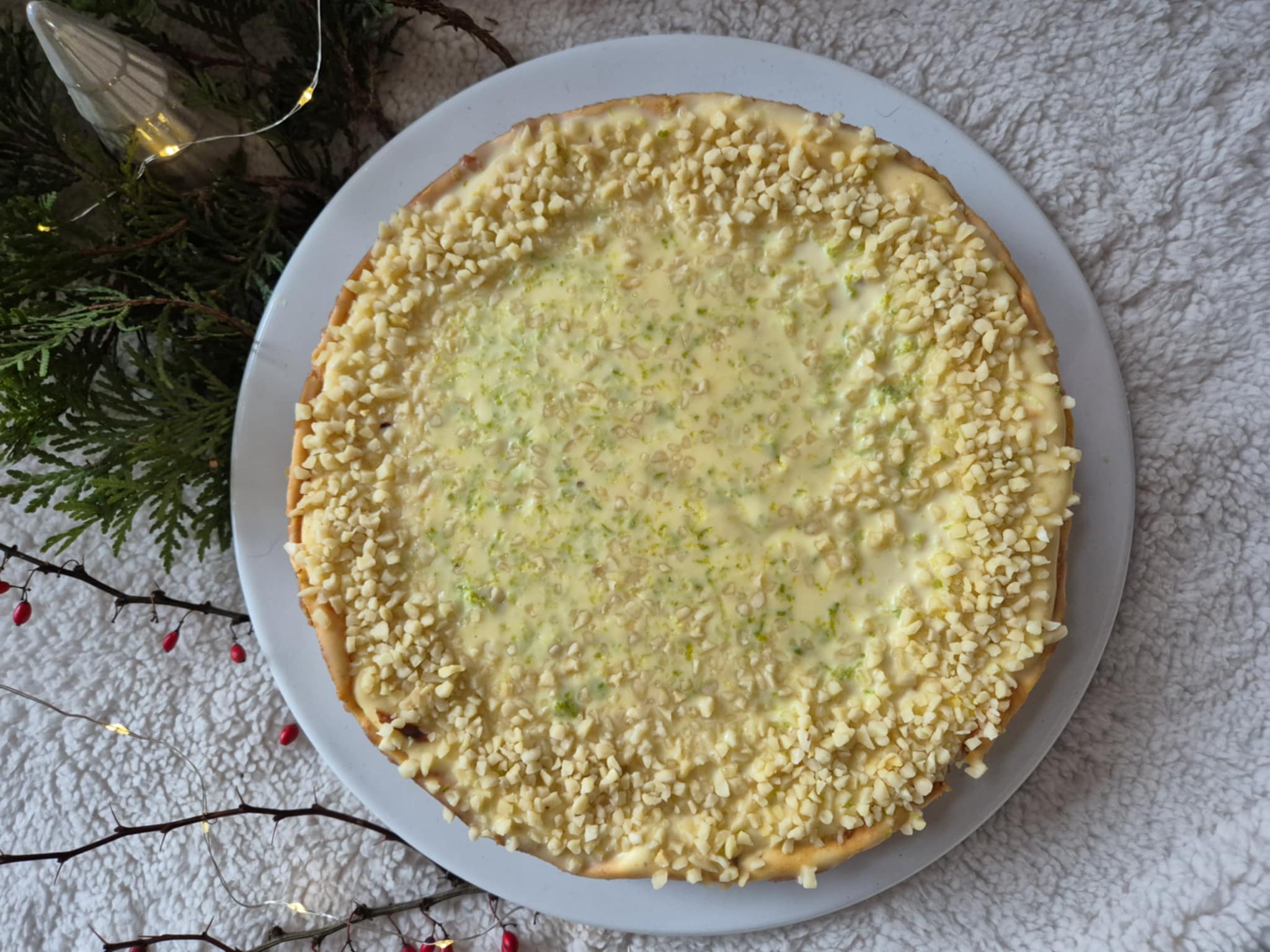 Oblany białą czekoladą z cytrynką , podkręcony aromatem limonki i chrupiącym krokantem orzechowym.
